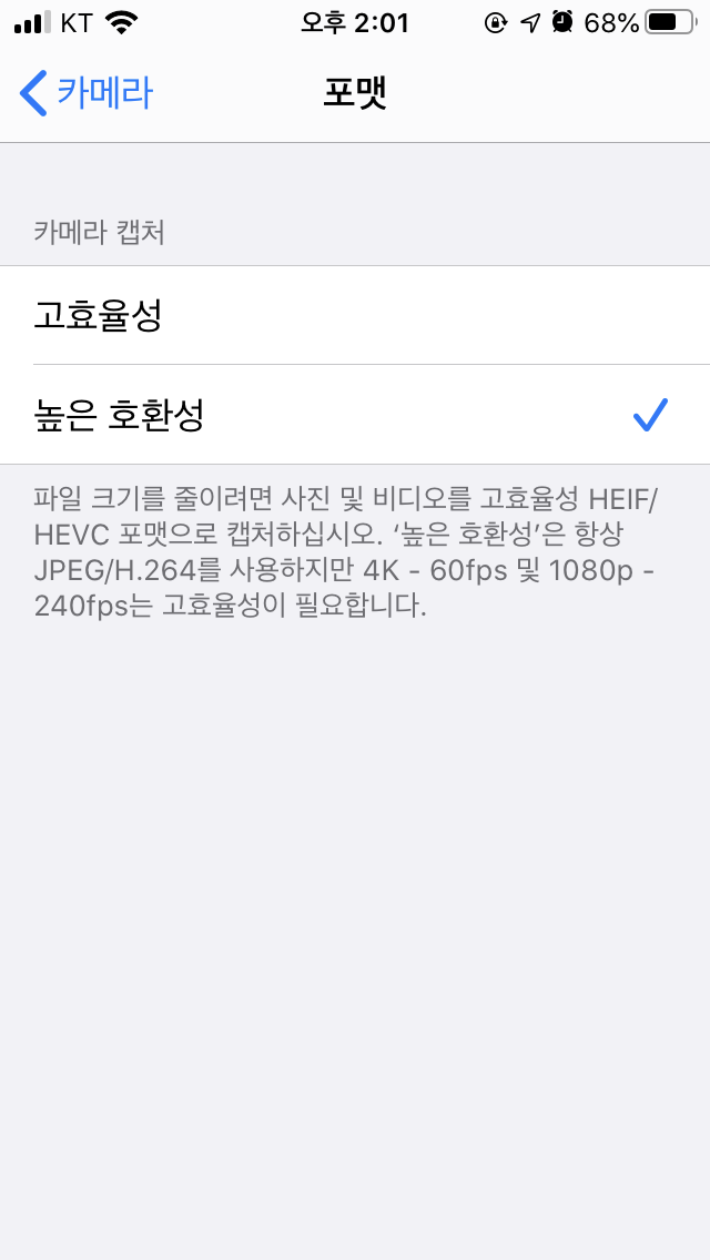 HEIC로 설정하면 되겠지만 나처럼 파일변환이 귀찮고 어려운 사람은 걍 요걸로 체크하는 것이 낫겠다.